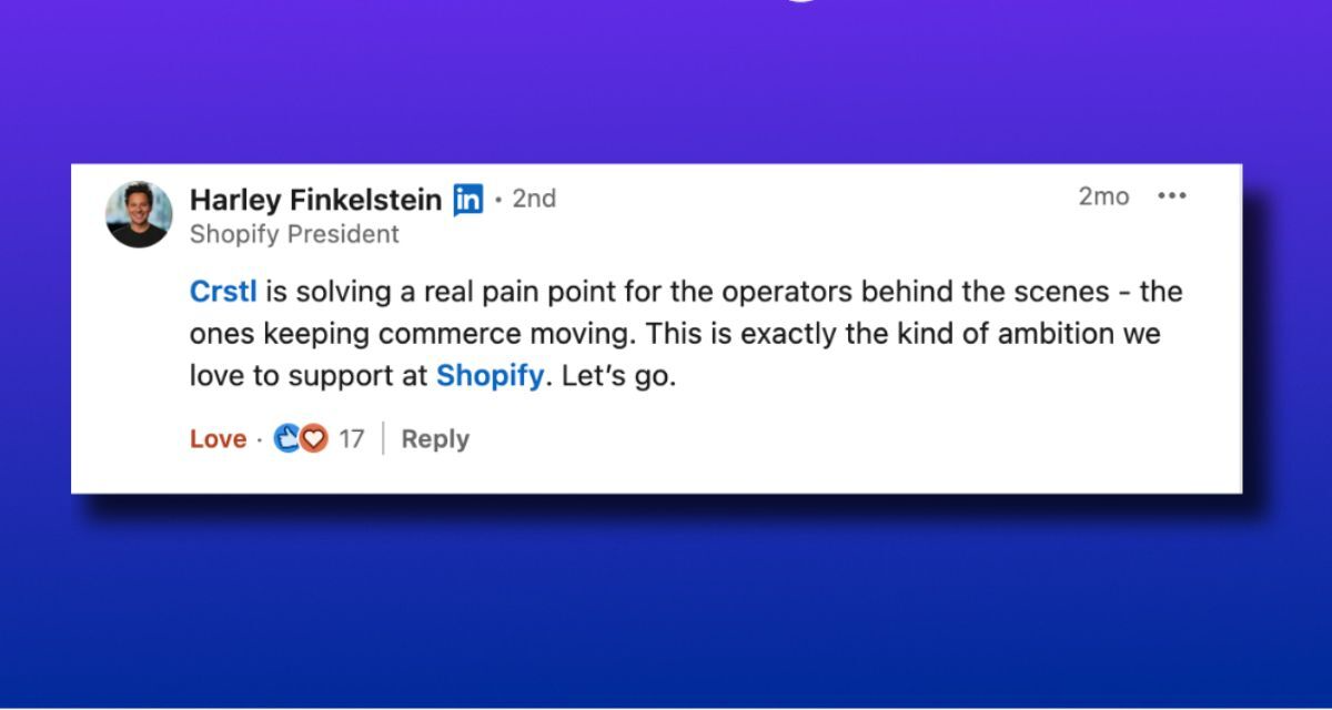 What makes this moment special is that it reflects a vision years in the making. Crstl exists to take the chaos out of B2B trade and to replace brittle workflows with infrastructure that works. Seeing that vision come alive at scale across customers, partners, and industries has been the most meaningful milestone of all. The best kind of work.